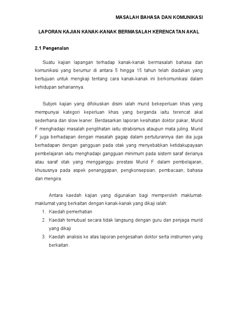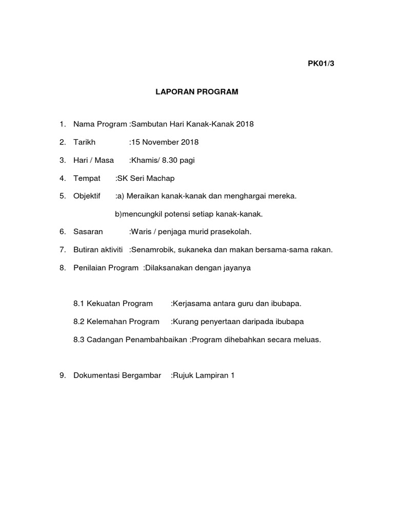 Contoh Ayat Laporan Kanak Kanak